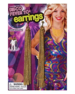 Mit den 70´s Disco Goldkettchen Ohrringe hast du ein spektakuläres Faschion Accessoire, das die große Zeit von ABBA und Queen wieder lebendig werden lässt. Der Kostümschmuck macht aus dir eine Dancing Queen, die Wert aufs Details legt und auf Glitzer und Glamour steht. Schießlich sorgen die Ohrringe im Ketten-Look für glanzvolle Auftritte im 70s Kostüm.