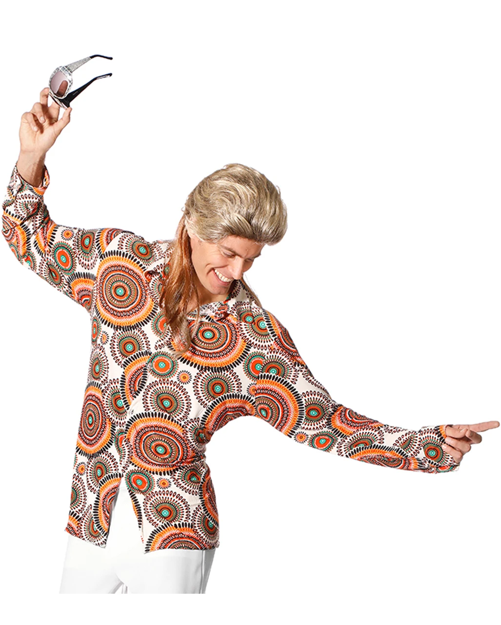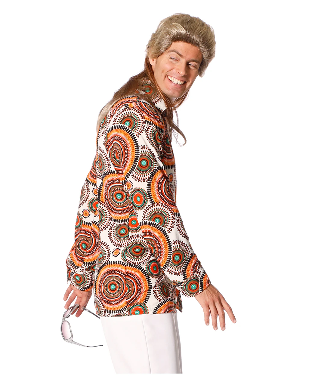 Besonders das Muster des 70s Kostüm-Hemd Herren sorgt nämlich Begeisterung. Auf jedem Event, bei dem Du als echter 70s Held auftrittst, ist das 70er Jahre Herren Kostüm-Hemd natürlich eine klasse Basis für Dein Kostüm. Es ist sehr angenehm leicht zu tragen. Das Muster aus lauter Kreisen ist im typischen Style der 7oer Jahre und gibt Dir den richtigen Look. Auch die Farbkombination aus Orange, Braun, Gelb und Rot lässt die 70er wieder aufleben. Kombinierbar ist das Herrenhemd besonders toll zu anderen Accessoires des 70er Stylings, die Du bei uns im Shop aussuchen kannst. Wie wäre es zum Beispiel mit der Grüne 70er Sonnenbrille.
