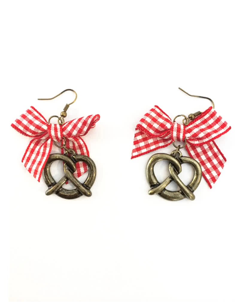 Mit den rot/weiß karierte Ohrringe mit Brezn Anhänger bist du für die Wies`n bestens gerüstet. Im Trachten Look kommen die Trachten Brezn Ohrringe mit Strass Steinchen besonders gut zur geltung und mit deinem Dirndl wirst du zum feschen Party Madl.