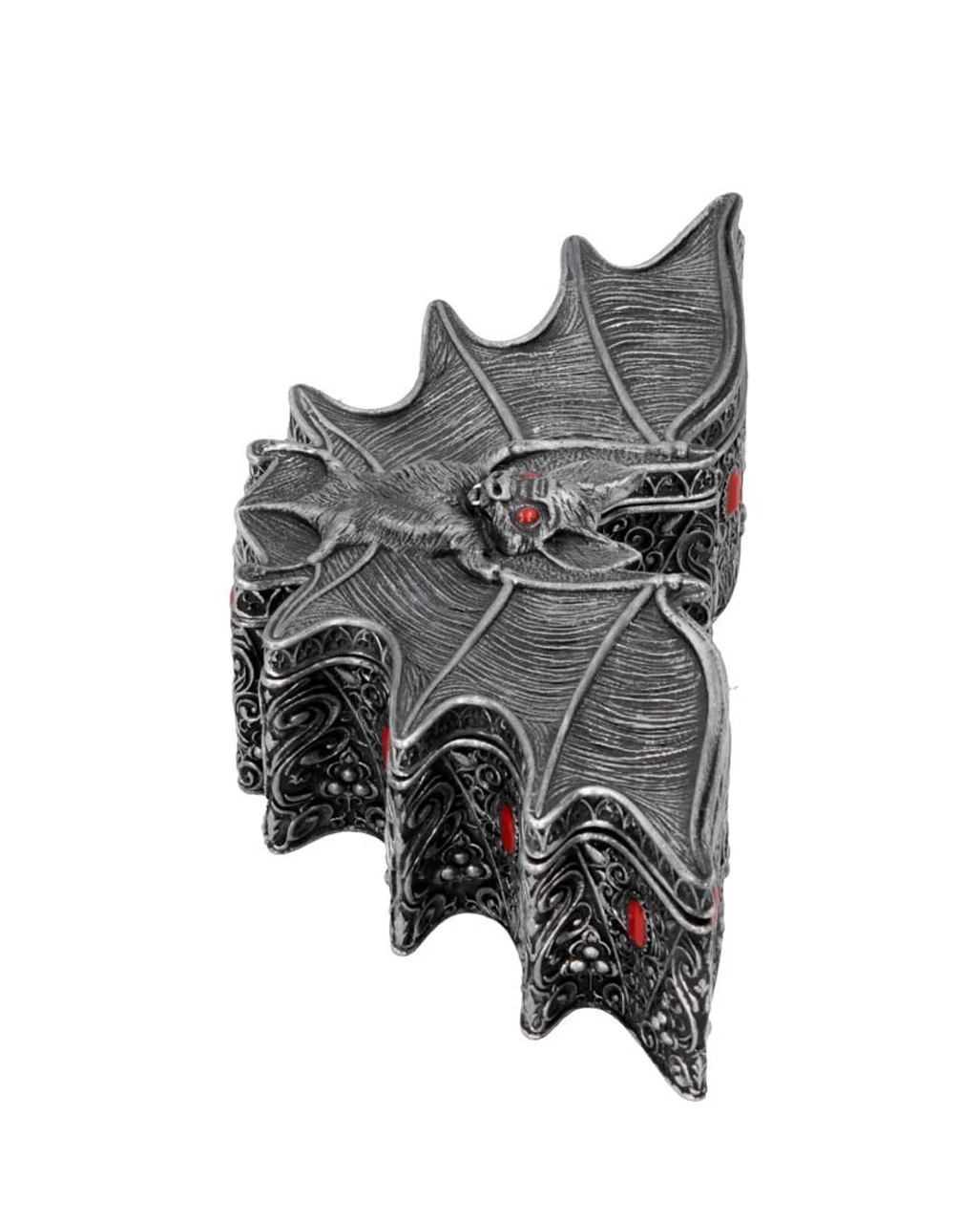 Gothic Schmuckschatulle mit roten Steinen im Fledermaus-Design