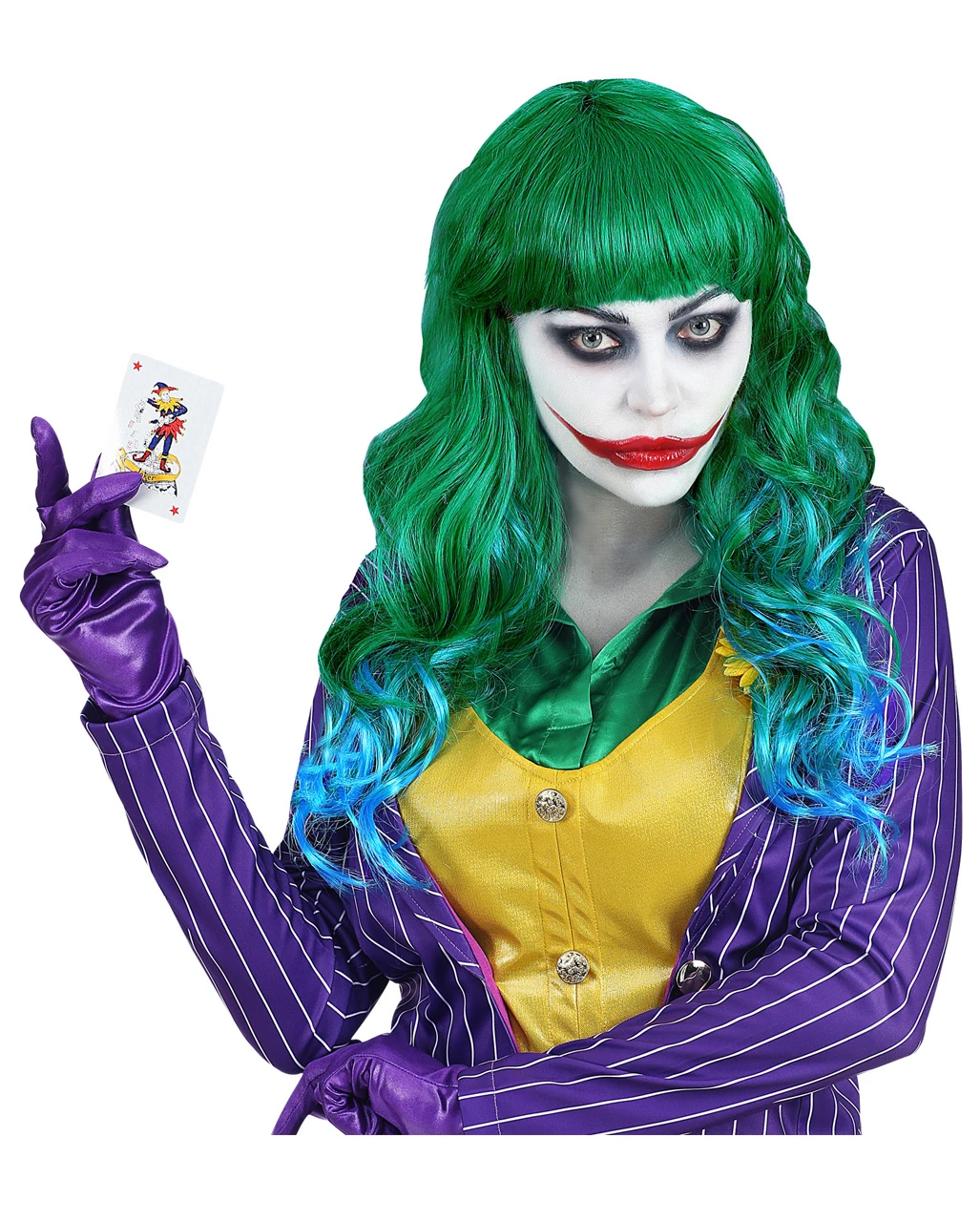Unsere Evil Joker Langhaarperücke ist eine grüne Halloween Perücke für Damen. Die Cosplay Perücke ist grün und hat einen türkisen Übergang, was ihr eine krasse Note verleiht.. Ein breiter Pony verleiht deinem Gesicht eine markante Erscheinung – ideal für die Verkörperung diverser Charaktere! Das Mrs. Joker Kostümzubehör lässt sich auch zu Fantasy Verkleidungen & Sci-Fi Kostümen tragen. Hierzu passt unsere Joker Grinsen Latexwunde und ein gruseliges Make-up aus unserem Onlineshop!