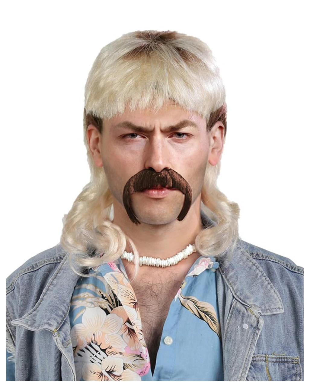 Der exotic Tiger Vokuhila ist im namensgebenden „Vorne Kurz, Hinten Lang“-Stil gehalten und blond-braun meliert. Die innen verwendete Netzstruktur sorgt für optimalen Halt und eine gute Passform der Faschings-Frisur. Dazu empfehlen wir das Schwarze Bärte Collection und das 2-teiliges Perückenstrumpf Set.
