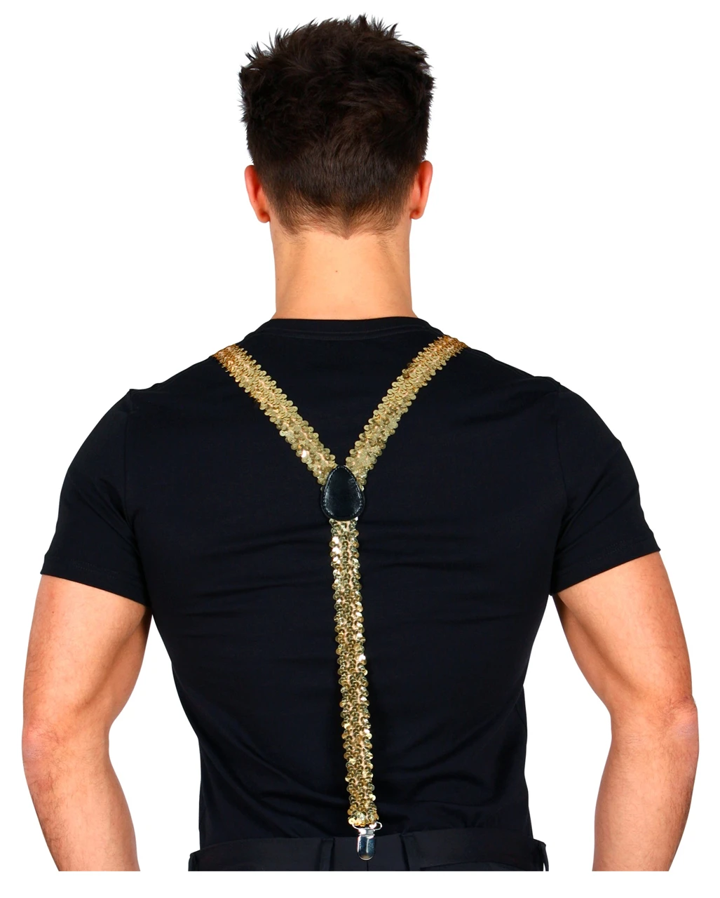 Lieferumfang: 1 x Goldene Pailletten Hosenträger
