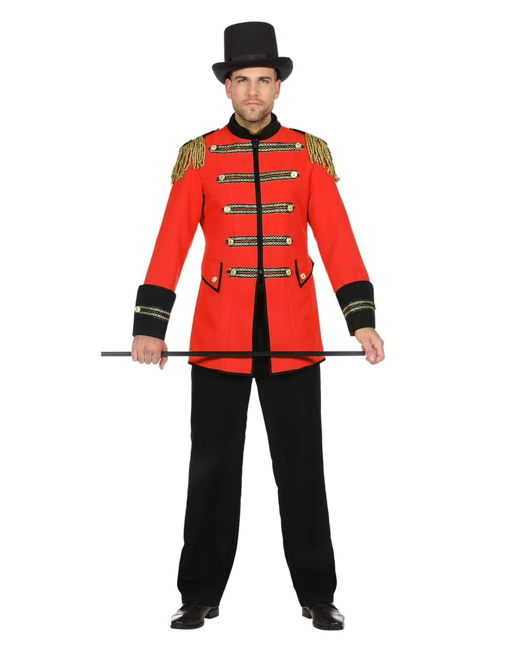 Also ab in die Manege: Der Herrenfrack Zirkus Direktor ist das ideale Kostümzubehör für Männer, die gerne den Ton angeben. Das leuchtende Rot des edel anmutenden Kostümfracks sieht man schon vom weitem. Die stimmigen Details, wie etwa die goldenen Nähte, die aufgenähten Knöpfe oder die schwarzen Applikationen, machen aus Dir einen eleganten Zirkusdirektor, der Menschen, Tiere und Sensationen im Griff hat. Die Damen auf der Motto Party werden begeistert sein. Und Du lüftest nun noch galant den Herren-Zylinder schwarz dazu.
