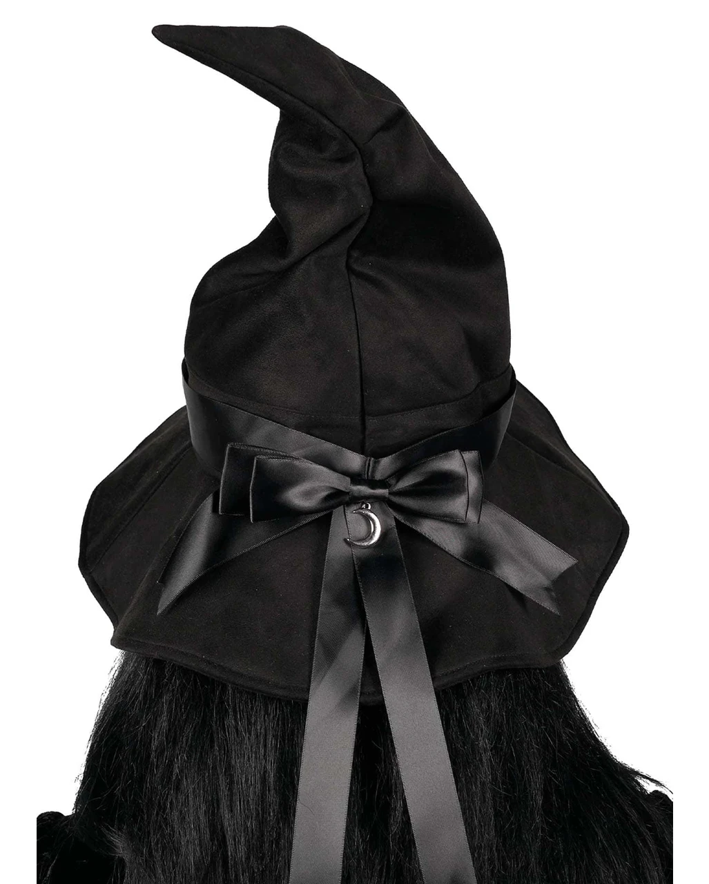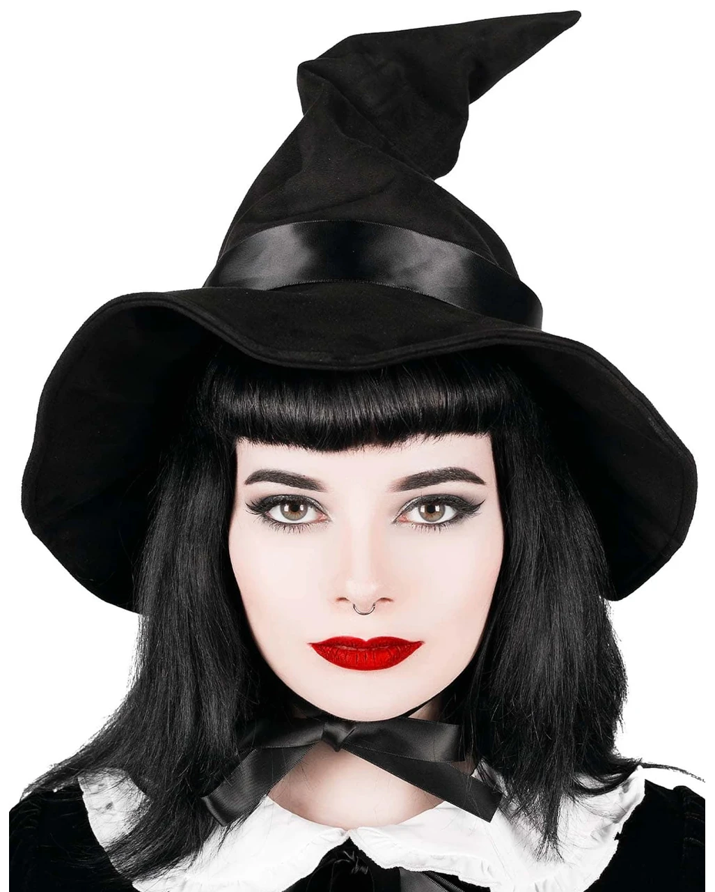 Der Hexenhut KILLSTAR ist eine hochwertige Kopfbedeckung, die deinen Look als Gothic Hexe komplettiert. Durch und durch von dunklem Zauber erfüllt, setzt du mit diesem besonderen Mode Zubehör eine Marke in Sachen Gothic Styling. Die Kopfbedeckung kann natürlich auch als Halloween Hexenhut verwendet werden. Der Gothic Hut ist schwarz, hat mit seiner Spitze eine Höhe von ca. 31 cm und ist mit einem Satinband verziert.