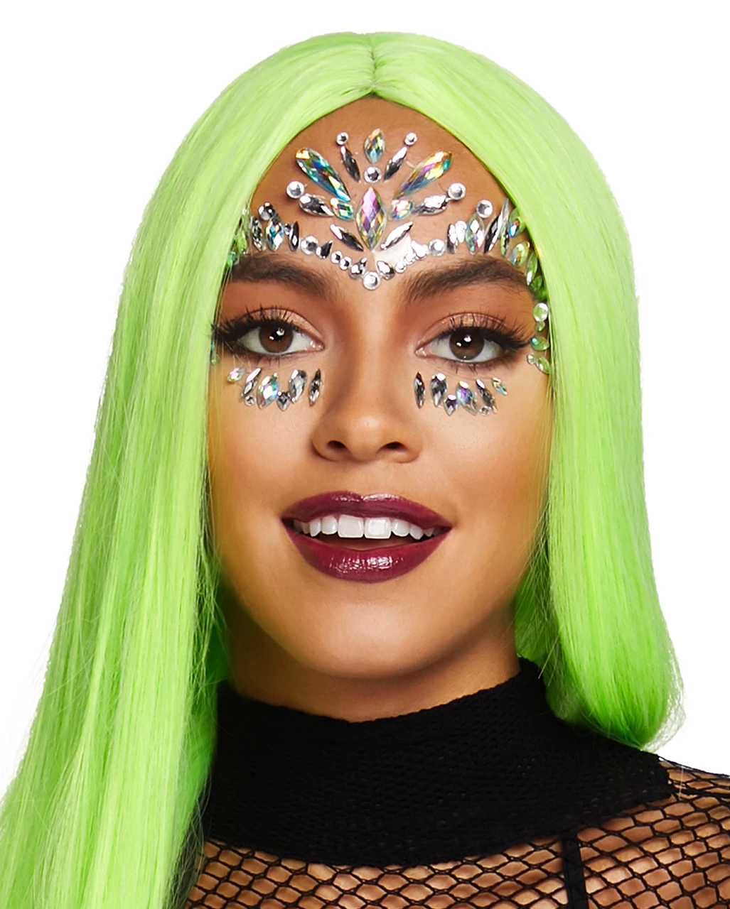 Romantische Fantasy-Looks gelingen dir jetzt ganz einfach mit den Juwelen fürs Gesicht Selbstklebend. Die Edelsteine können wahlweise mit einem auffälligen Make-up kombiniert, oder ganz pur getragen werden – für Festivals und Faschingskostüme sind diese Glitzer Klebesteine für die Haut ein echter Hit!