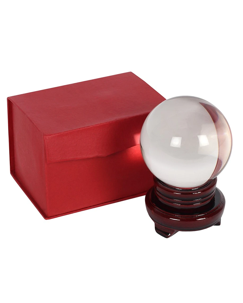 Glasklare Kristallkugel mit kleinem Holzsockel & Aufbewahrungsbox