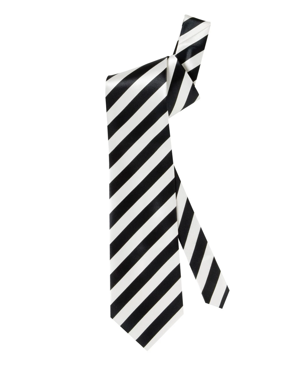 Die schwarz weiß gestreifte Krawatte hat eine seidig glänzende Oberfläche. Sie ist nicht vorgebunden und kann deshalb nach belieben selbst gebunden und getragen werden. Sie passt prima zu Kostümen wie dem Mafia Boss Kostüm oder zumHerren Frack weiß.