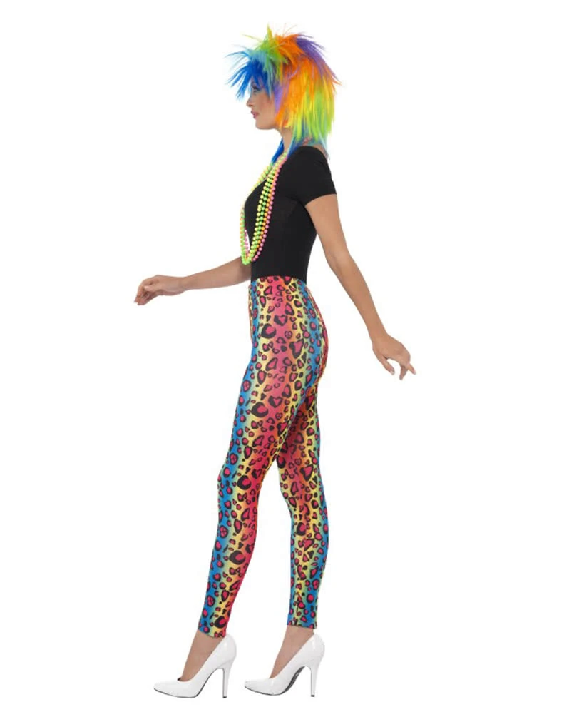Schrille Mode war in den 80er Jahren ein Muss. Je bunter und ausgeflippter desto besser. Hol dir deshalb die Neonfarbene Leoparden Leggings und verkleide dich Stilecht als Disco Queen für die nächste 80er Jahre Motto Party im Karneval.