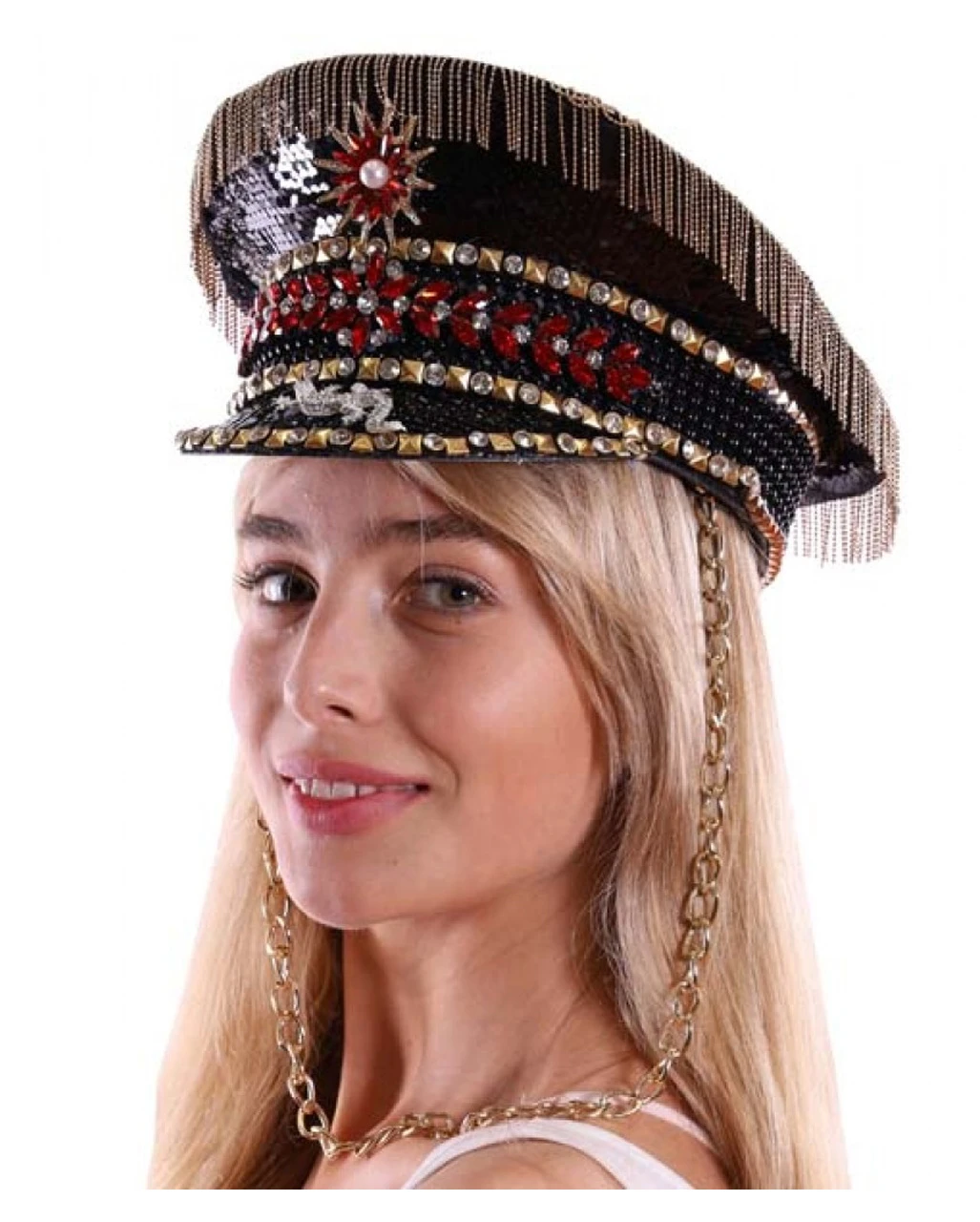 Lieferumfang: 1 x Militär Pailletten Schirmmütze Schwarz