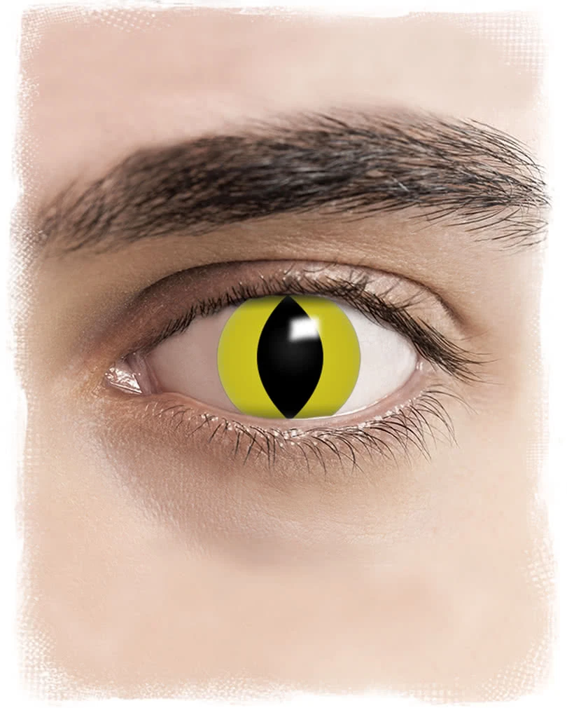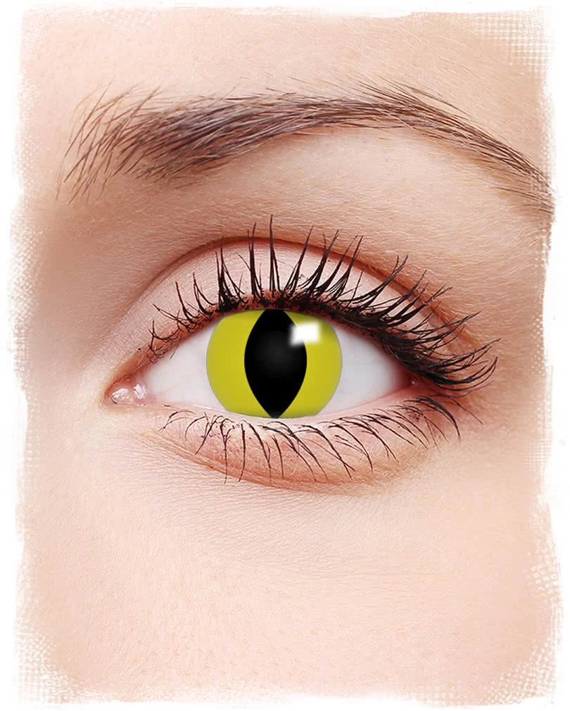 Die Motivlinsen gelbe Katzenaugen Motiv haben einen besonders angenehmen Tragekomfort und sind der Hingucker auf der nächsten Faschings-Party. Bis zu 3 Monate anwendbar bei entsprechender Pflege. Du erhältst von uns Kontaktlinsen, die ungeöffnet ein Haltbarkeitsdatum von mehreren Jahren haben. Diese sind für helle und dunkle Augen geeignet und haben eine sehr starke Deckkraft sowie eine außerordentlich Qualität. Hergestellt im Sandwich-Verfahren. Dadurch gelangen garantiert keine Farbpartikel ins Auge. Nicht im Straßenverkehr geeignet! Bestelle jetzt am besten gleich die dazu passende Kontaktlinsen-Pflegemittel 50ml mit.