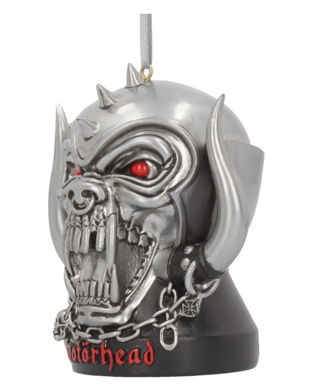 Das ikonische Warpig (auch bekannt als „Snaggletooth“) steht für Lautstärke, Dreck, Potenz und Freiheit. Es ist ein wichtiger Bestandteil des Vermächtnisses von Motorhead und symbolisiert die Einstellung und den Lebensstil der Heavy Metal Band. Seine glühend-roten Augen starren unverwandt nach vorne, während sich an der Oberseite des Helms mit den drei Stacheln eine kleine Schlaufe und ein Band befinden. Perfekt als Heavy Metal Christbaumschmuck!