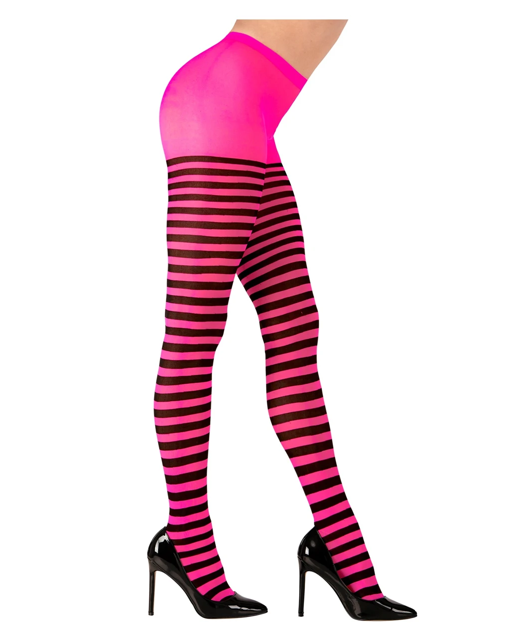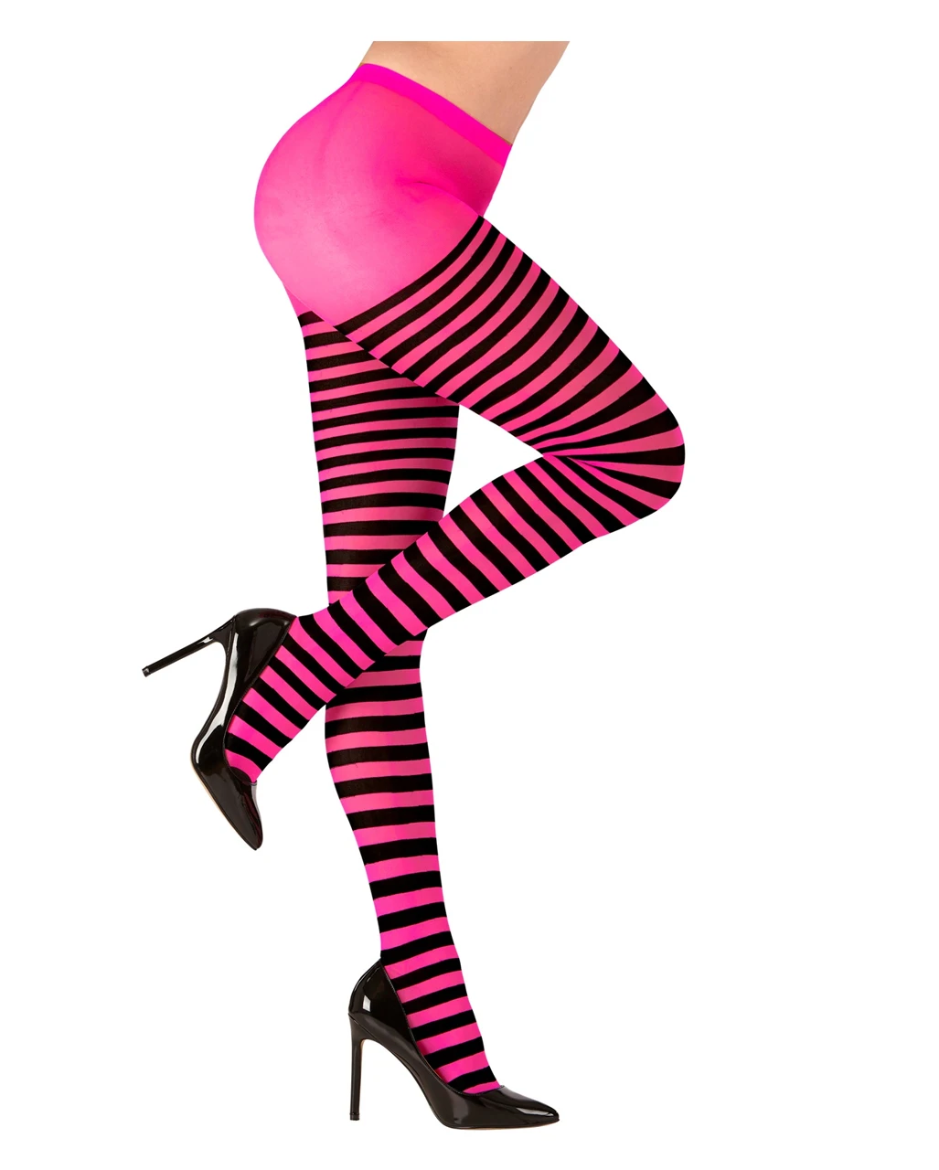 Lieferumfang: 1 x Neon Strumpfhose gestreift pink