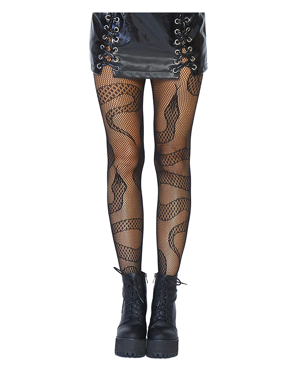 Kleinmaschige Strumpfhose mit Schlangenmotiv für Halloween
