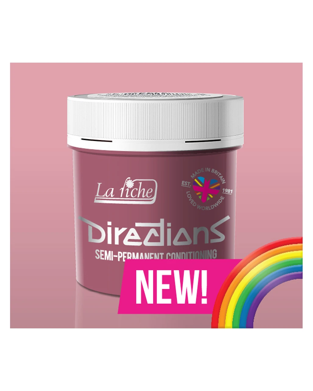 Die Pastel Rose Directions Haarfarbe ist eine hübsche Farbnuance und für schonend aufgehelltes Haar geeignet. Je nach Einwirkzeit lässt sich mit dem Pastellrosa Farbton herumspielen. Die Pastel Rose Directions Haarfarbe auf gewaschenes, handtuchtrockenes Haar auftragen und danach mit einem Kamm durchkämmen, damit ein gleichmäßiges Farbergebnis garantiert werden kann. Nach einer Einwirkzeit von ca. 15-30 Minuten sorgfältig ausspülen und mit dem Directions Directions Farbschutz Conditioner 250 ml versiegeln. Directions Haartönungen können super untereinander gemischt werden, somit können neue Farbtöne und Schattierungen kreiert werden.