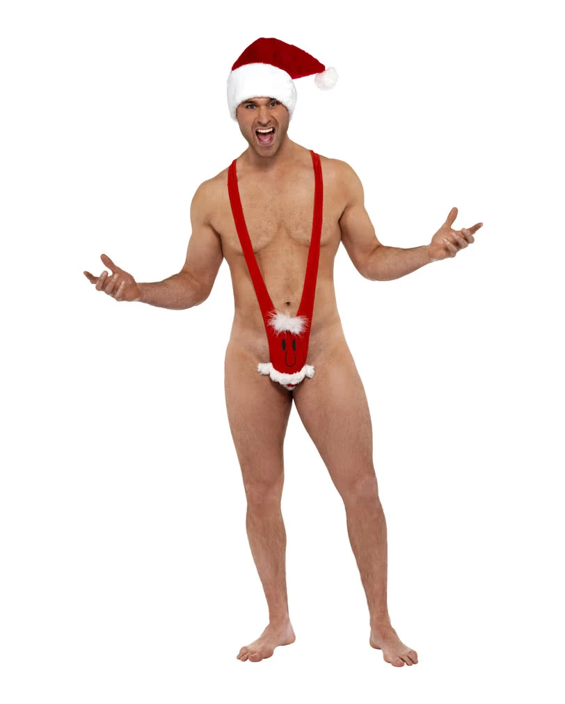 Mit dem textilarmen Santa Face Man-Kini bist du an weihnachten besonders Aufsehen erregend gekleidet und machst dich zu einem Hingucker für die Frauenwelt.