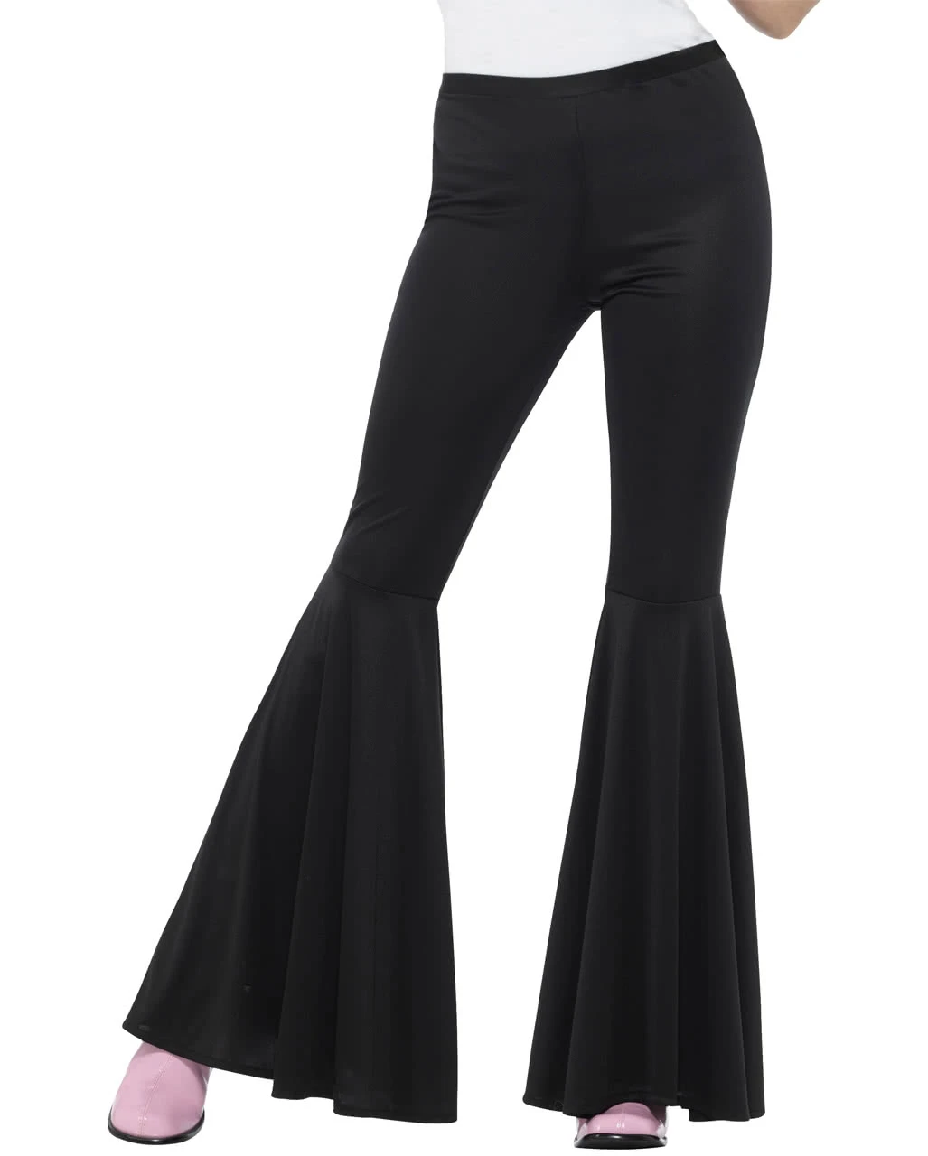 Mit unserer schwarzen Damen Schlaghose hast du ein stylisches Accessoire für deine Hippie Verkleidung und dein Techno-Kostüm. Die Schlaghose in Schwarz eignet sich damit hervorragend für Fasching und 60er Jahre, 70er Jahre, Hippie und Disco Motto Partys!