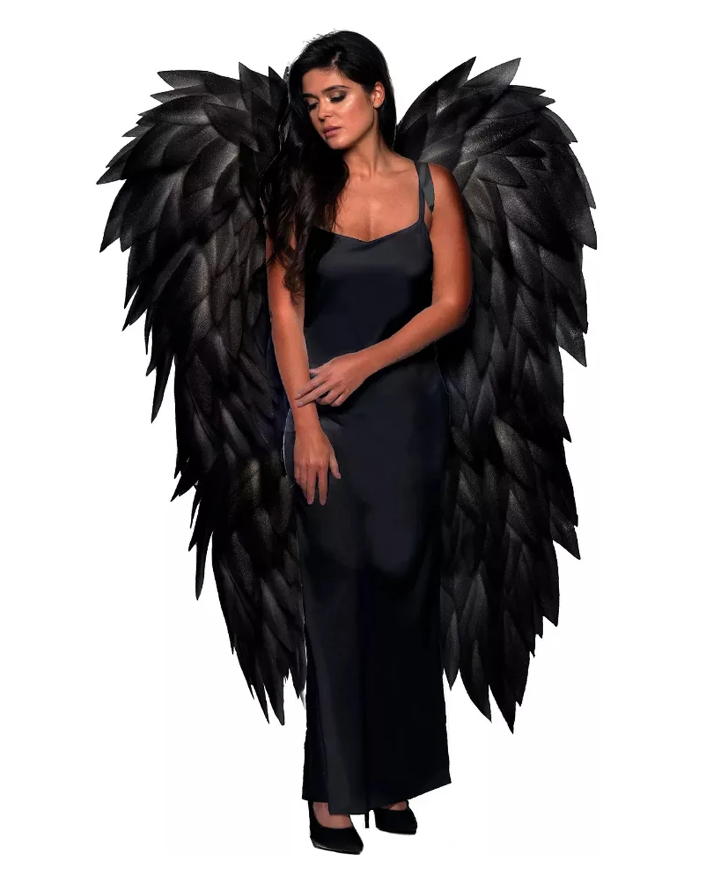Werde zum Rabenkönig, zum gefallenen Engel oder zu einem Dämon. Zu deinem Kostüm dürfen unsere außergewöhnlichen, bodenlangen Kostümflügel nicht fehlen. Die federlosen Flügel kommen ohne tierische Inhaltsstoffe aus und sind auch für Veganer geeignet. Die Kostümflügel in Schwarz sind für beide Geschlechter geeignet und super flexibel einsetzbar. Ihre einzigartige Optik macht sie perfekt für Kostümfeste aller Art.