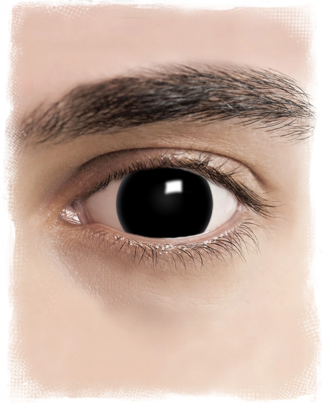 Schwarze Mini-Sclera Kontaktlinsen sind ein absolutes Highlight für dein Halloween Make-up. Die Effektlinsen sind etwas größer als „normale“ Linsen & vergrößern dadurch deine Iris. Die weichen Scleralinsen verwandeln dich im Handumdrehen in eine böse Hexe, der die Augen fehlen.