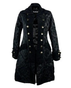 Damit Steampunk & Gothic Outfits in kühleren Zeiten auch ein Hingucker sind, können diese mit einem Brokat Piratenmantel für Damen ergänzt werden. Der schicke Gothic Mantel ist extravagant gestaltet und passt zu den unterschiedlichsten Blusen und Kleidern.