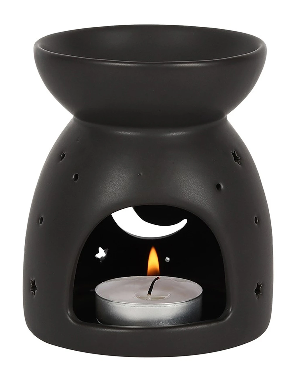 - schwarzer Keramik-Ölbrenner mit ausgestanztem Mond & Sterne Motiv