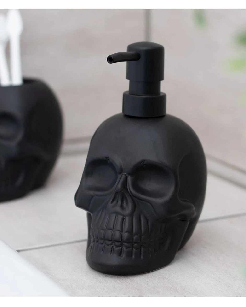 Dekoriere jetzt dein düsteres Zuhause in eine stylische Gruft und gönne dir für das Badezimmer einen ausgefallenen Seifenspender. Unser schwarzer Totenkopf Seifenspender ist aus matt, glasiertem Keramik gefertigt und ist dadurch ein echter Hingucker.