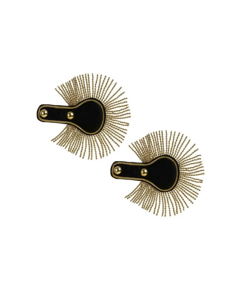 Die schwarzgoldene Schulterstücke lassen sich an die Schultern einer Jacke nähen, mit der Zierbordüreneinfassung bekommen sie ein richtig edlen Look. Kleine Zöpfe am Rand sorgen für eine authentische Generalsoptik. Zwei Unechte-Knöpfe in der Mitte imitieren ein anknöpfen an den Schultern und sorgen für ein schönes Aussehen. Zusammen mit der Komiteemütze rot-weiß mit Marabubesatz ensteht ein super Jecken-Outfit.