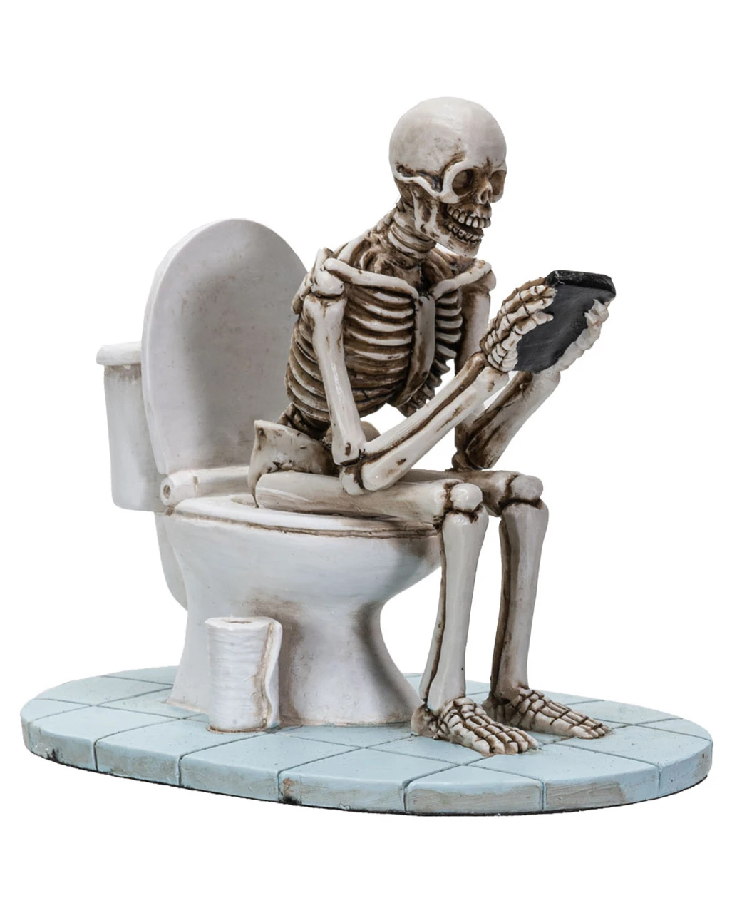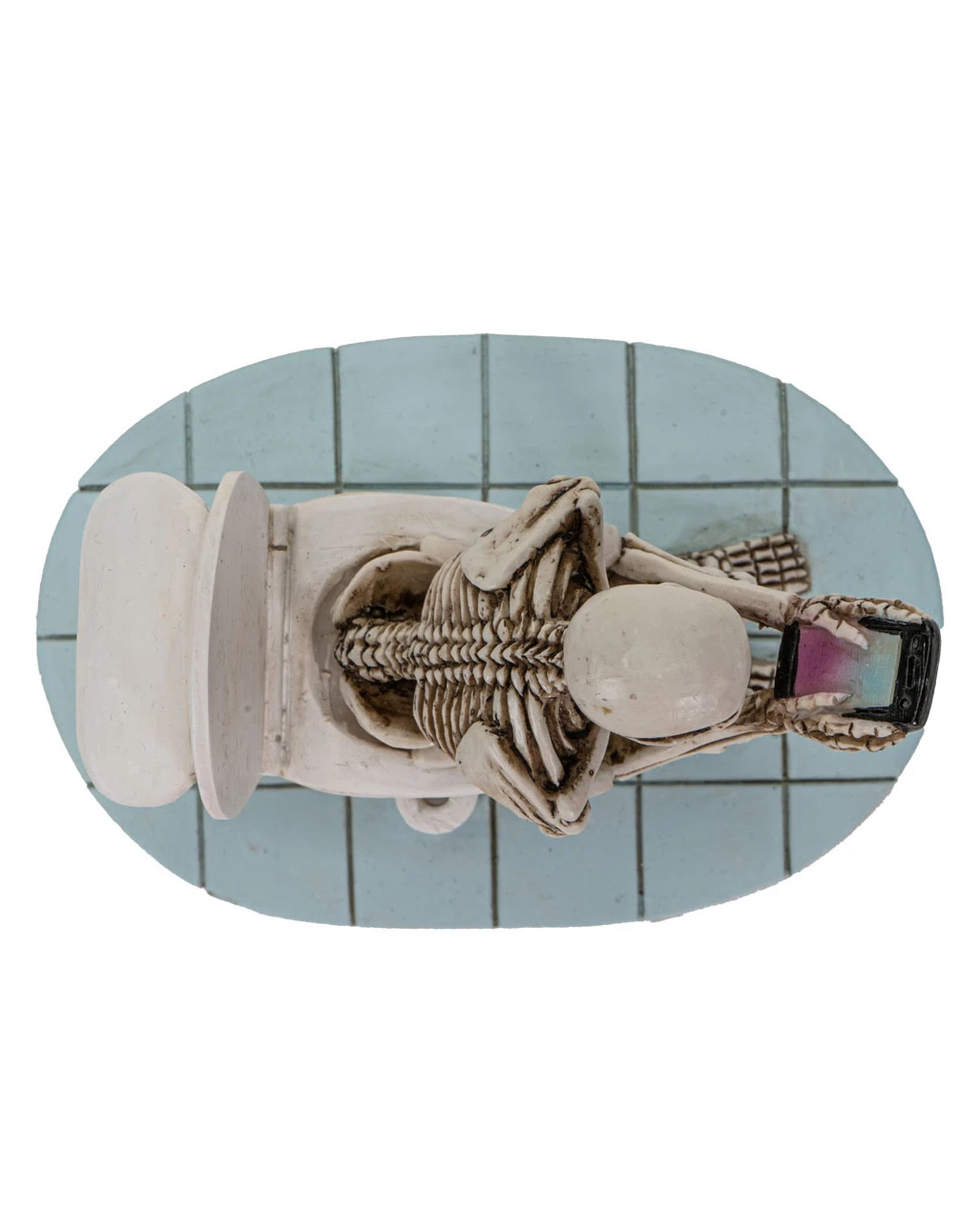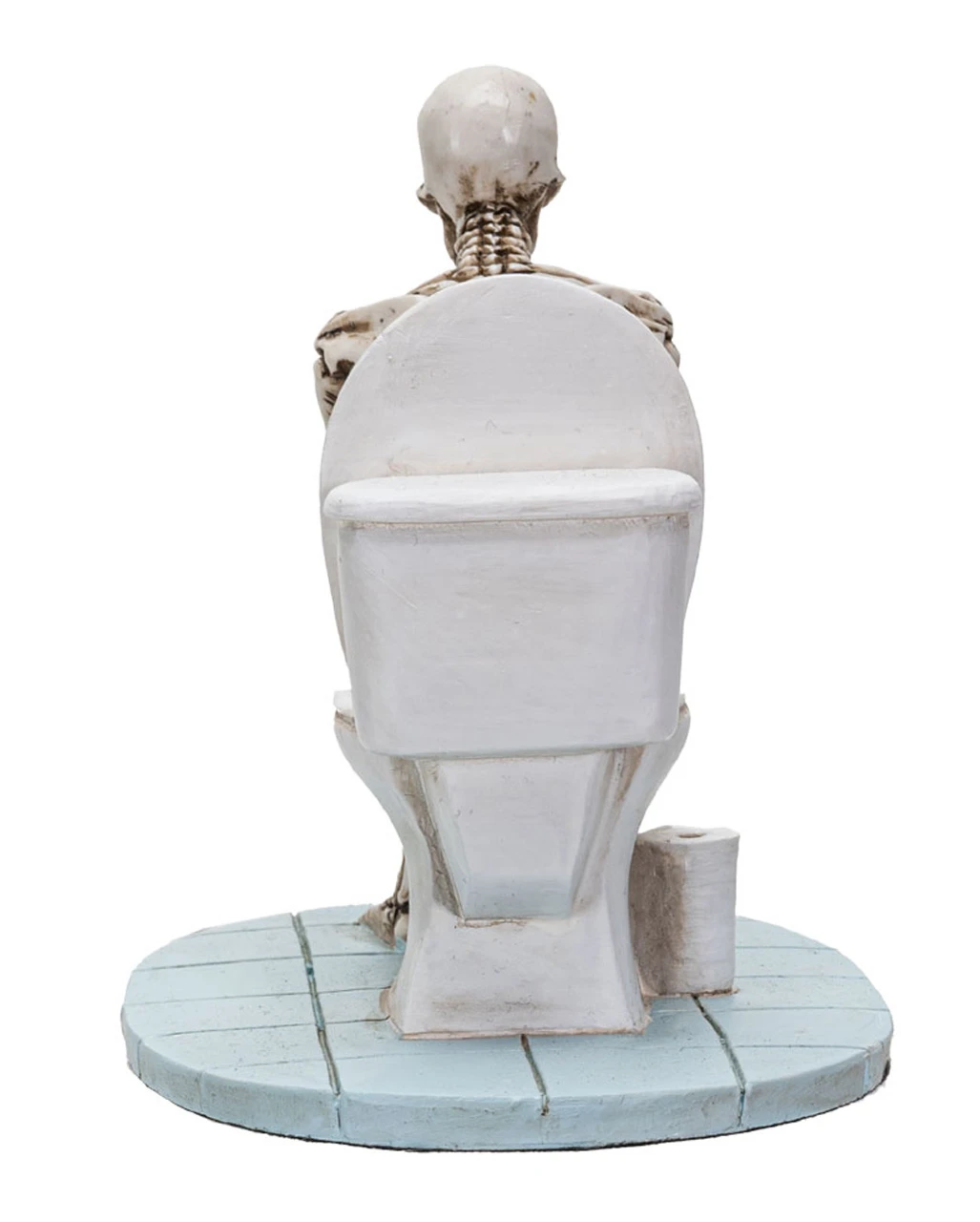 - Skelettfigur auf der Toilette sitzend als witziger Geschenkartikel