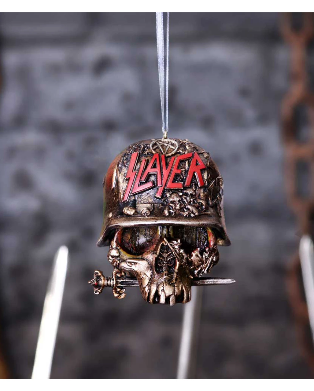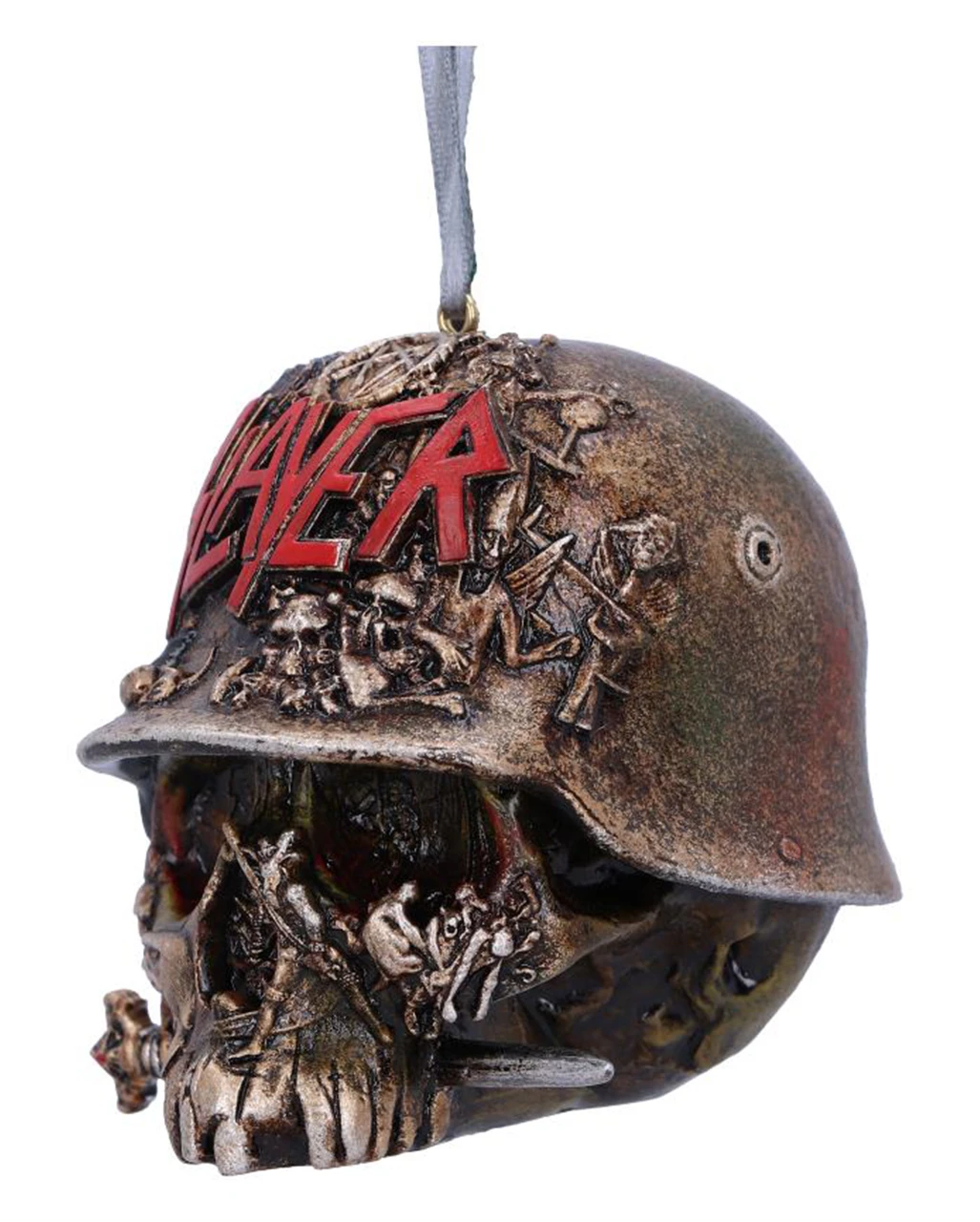 Huldige jetzt den Idolen deiner Lieblingsband Slayer und gönn dir dieses einzigartige Totenkopf-Ornament für den Christbaum. Diese krasse Slayer Totenschädel Christbaumkugel sorgt für Festival Feeling unterm Tannenbaum. Unser Totenschädel Ornament zum Aufhängen zeigt den bewaffneten Skull mit Helm und Slayer-Schriftzug. Das beste Geschenk, was du einem Metal Fan machen kannst!