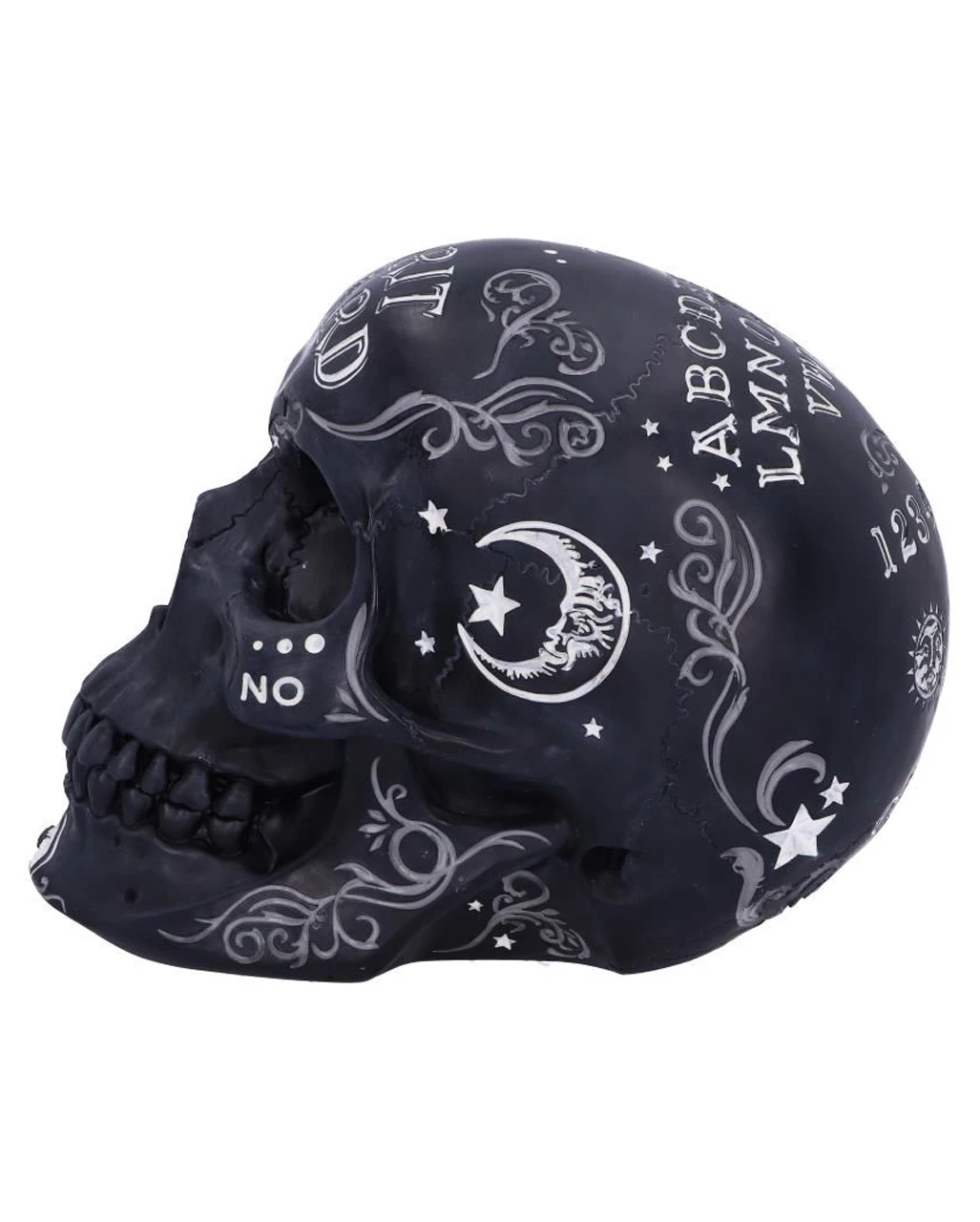 Mystisch aussehender Totenschädel mit Ouija Hexenbrett Symbolen als Gothic Deko