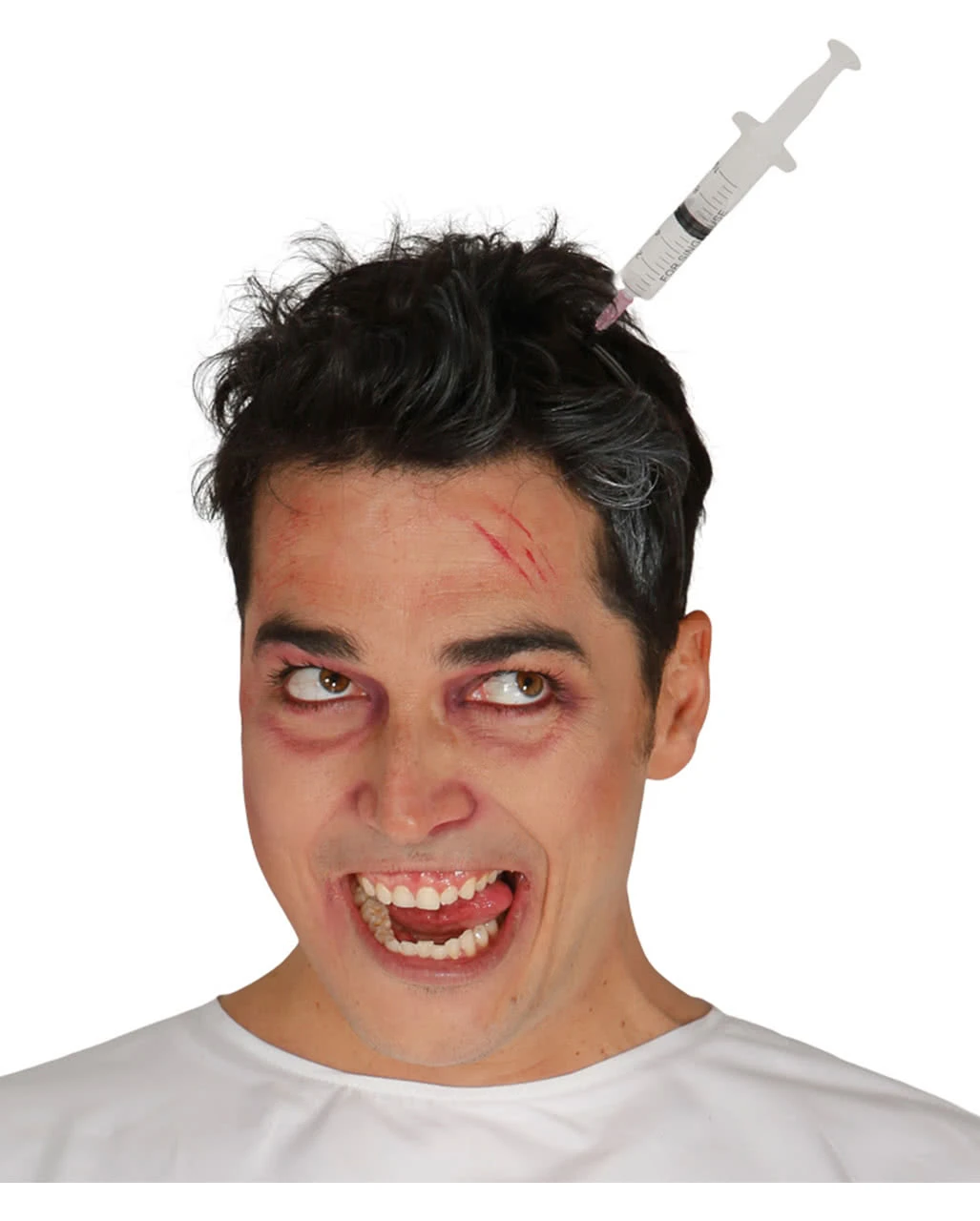 Verkleide dich mit der befüllbaren Haarreif-Spritze als Horrordoktor einer Klinik, der an den Insassen seine Experimente versucht oder als Zombie Krankenschwester, der man einen Impfstoff gespritzt hat – der leider nicht geholfen hat. Welches Faschingskostüm du auch wählst, mit der Horror Spritze hast du ein tolles Kostüm Accessoire. Der Spritze durch den Kopf Haarreif ist ein super Gruseleffekt und macht dich auf der nächsten Karnevals- und Faschingsparty zum Hingucker.