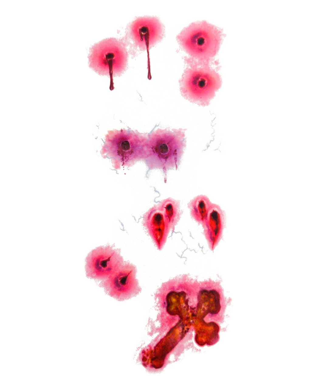 Hol dir die echt aussehenden Tattoowunden Vampirbiss und schmücke dich mit blutigen Bisswunden in Form eines Klebetattoos. Die Tattoowunden Vampirbiss sind eine sehr schnelle Möglichkeit dich ohne großen Schminkaufwand in das Opfer eines Vampirs zu verwandeln.