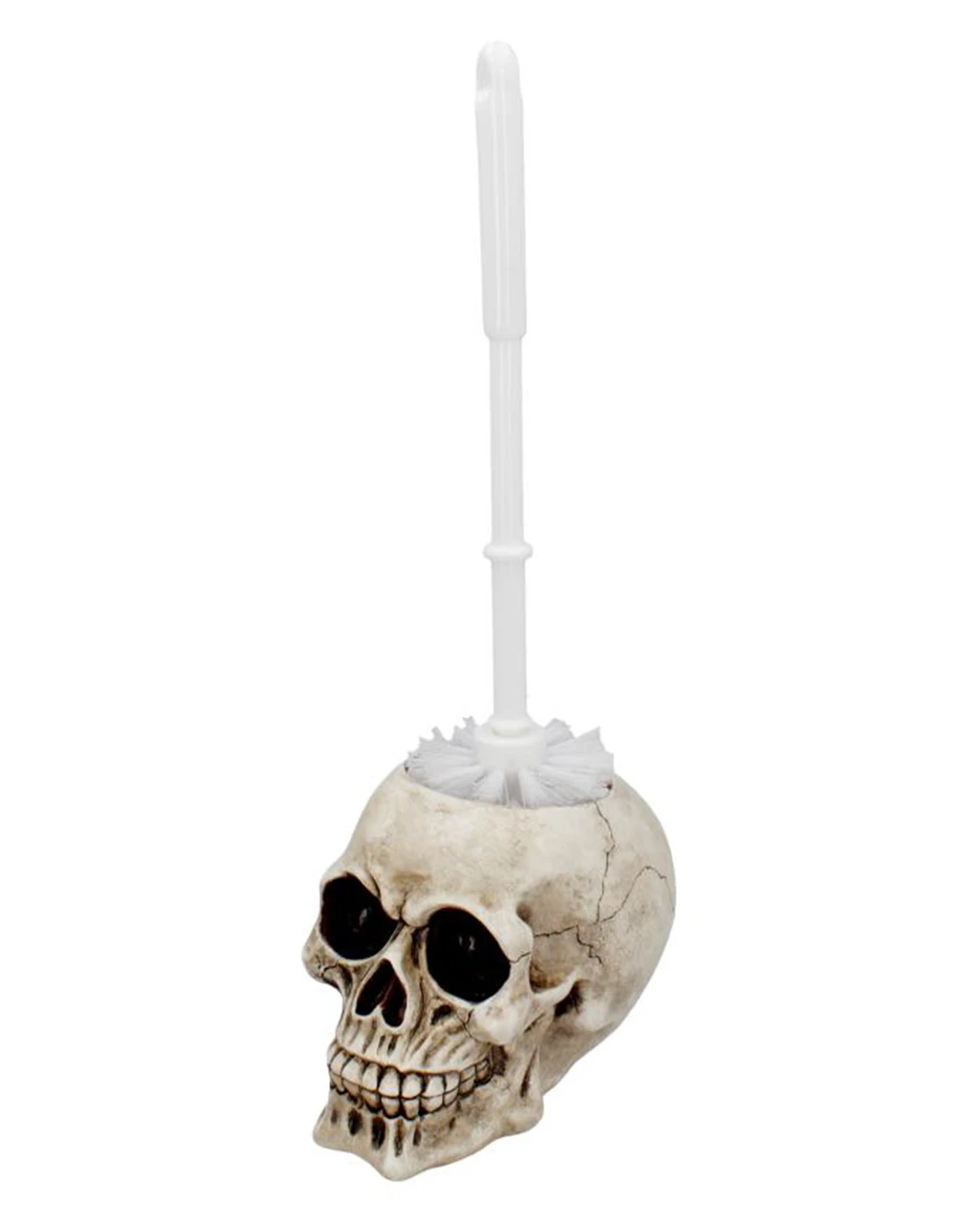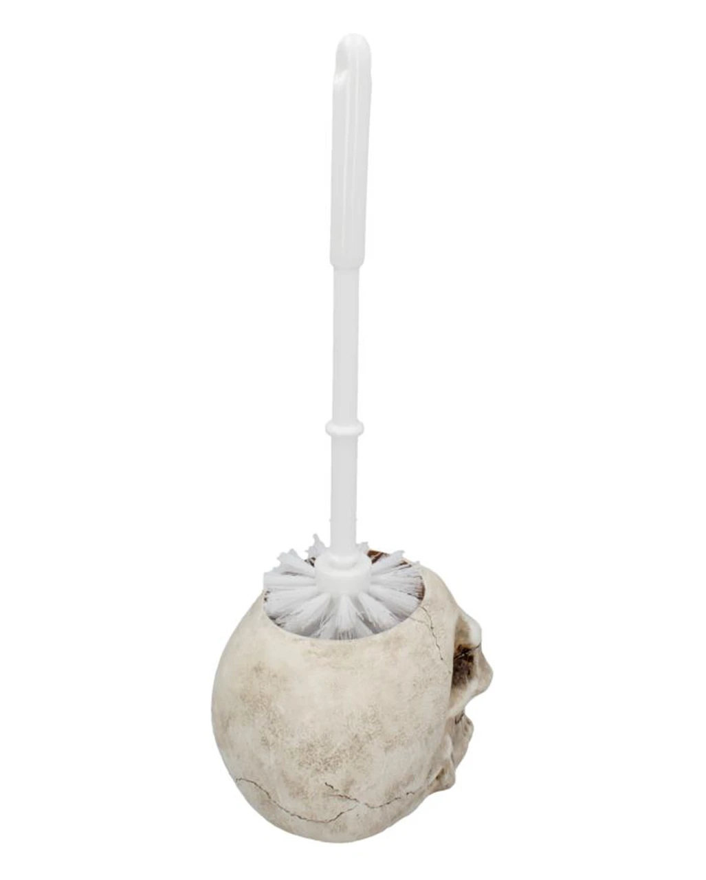 - Beiger Totenschädel kommt mit Klobürste