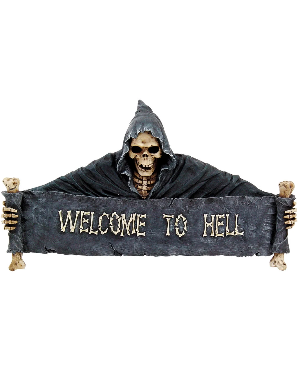 „Willkommen in der Hölle“ Schild mit Skelett für die Halloween Party