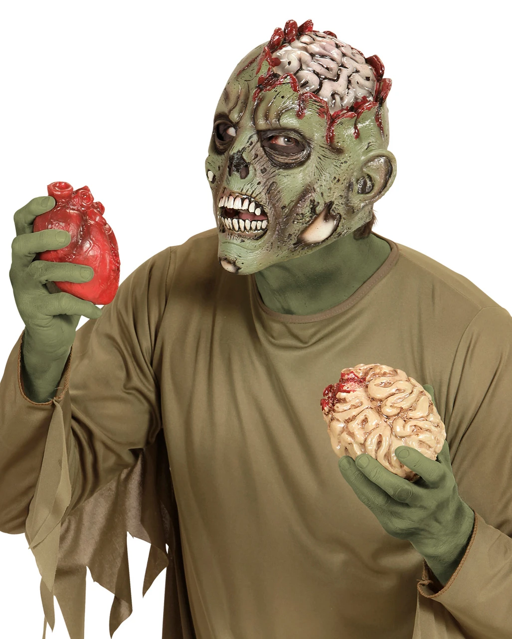 Die Zombie Hirn Maske ist eine Latex Maske die dir ein aufwändiges Halloween Make-up erspart. Authentische Applikationen machen diese Horror Maske für Halloween & Zombie Walk ideal. Trage die Zombie Hirn Maske zu unserem Blutiger Arzt Kittel