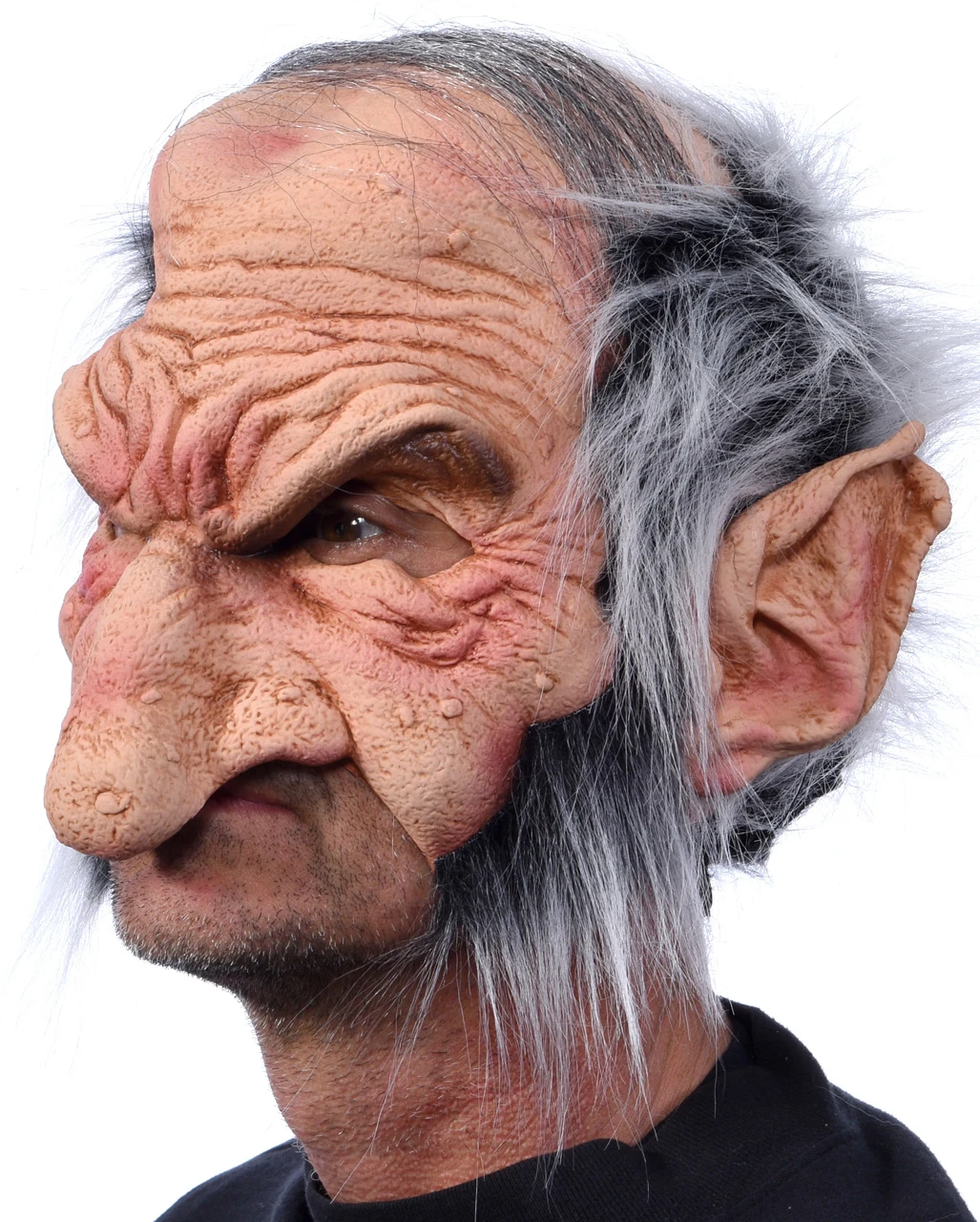 Bei der fantastisch aussehenden Zwergenmaske ist die Augenpartie ausgeschnitten und der Kieferteil weggelassen, sodass dein eigener Mund und dessen Kinnpartie, die Maske vervollständigt. Durch diesen Effekt lässt sich mit der Maske hervorragend sprechen und eine besondere Mimik entsehen. Die vielen Falten und die großen, knorrigen Ohren lassen die Maske wirklich zu einem tollen Schauspiel werden. Nach dem Tragen der Halloween-Horrormaske empfehlen wir dir, deine Latexmaske vorsichtig zu reinigen und vor Sonnenstrahlen zu schützen. So hast du mit deiner Latexmaske lange Spaß und Freude.